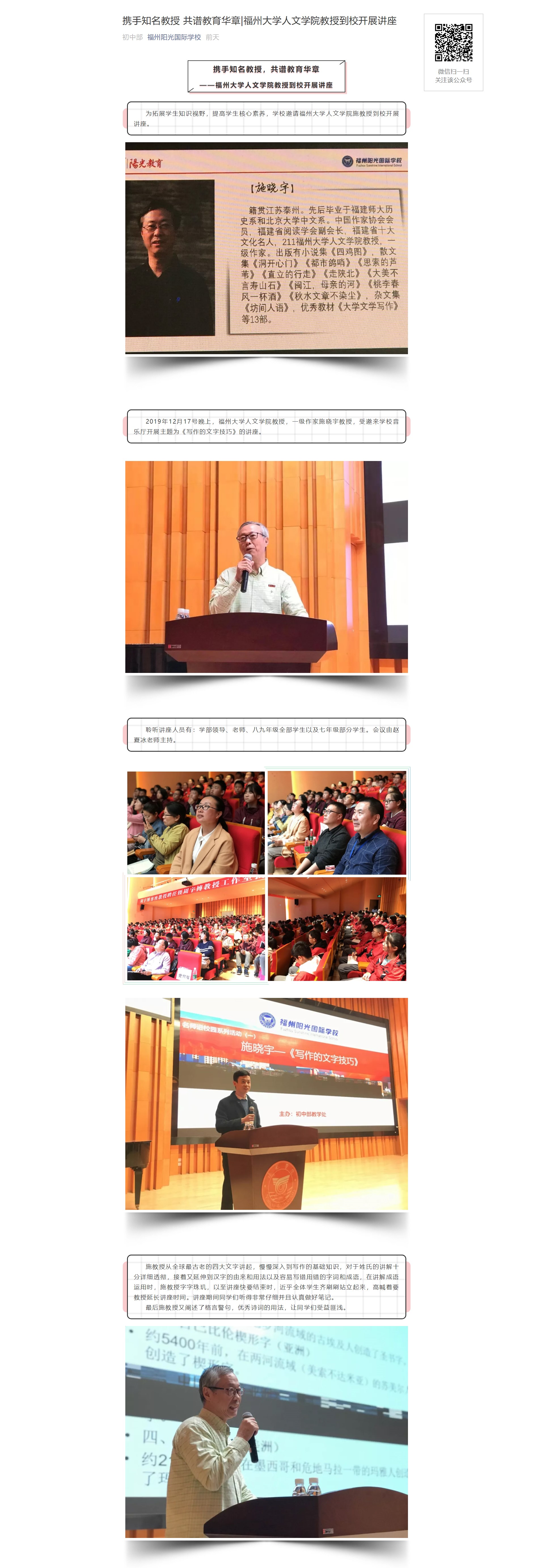 攜手知名教授 共譜教育華章|福州大學(xué)人文學(xué)院教授到校開展講座
