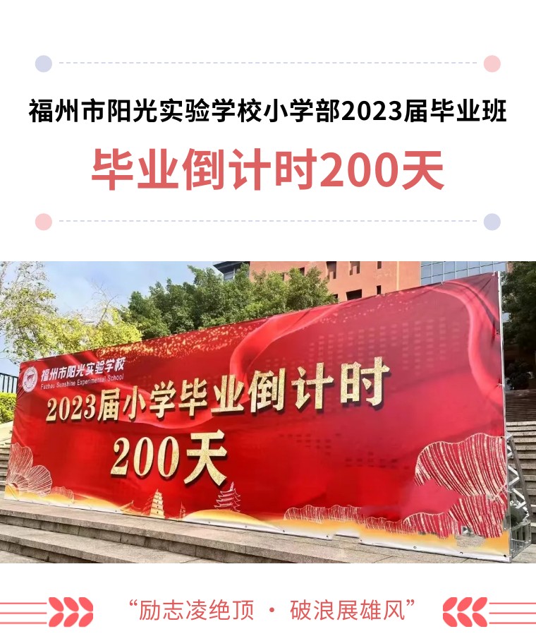人間九月天,秋色滿園意正濃。為了營造濃厚的學(xué)習(xí)氛圍,增強(qiáng)學(xué)生珍惜時(shí)間,勇敢奮斗的觀念,2022年9月30日,福州市陽光實(shí)驗(yàn)學(xué)校小學(xué)部舉行小學(xué)畢業(yè)200天倒計(jì)時(shí)大會(huì)。